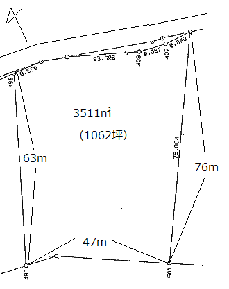 | 地目・地積 | 山林 3511㎡(1062坪) | 取引形態 | 仲介(仲介手数料30万円+消費税) |