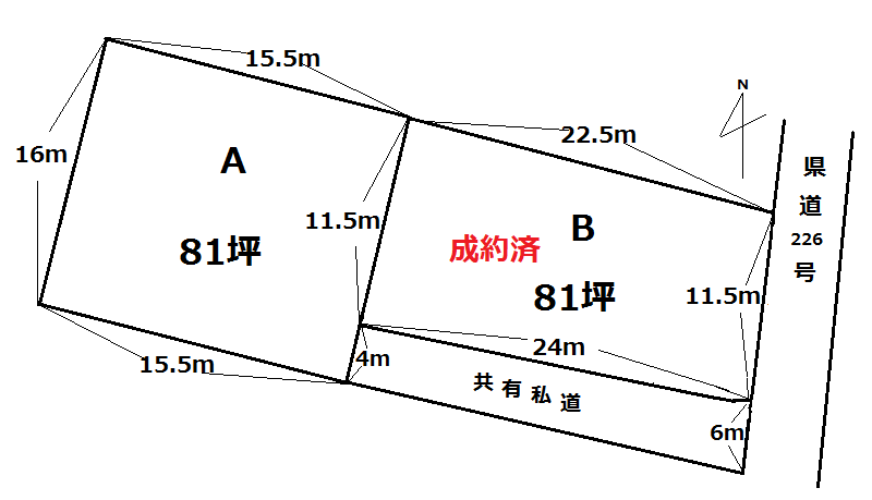 | 接道 | ① 東側共有私道4m/② 東側県道11.5m・南側共有私道24m | 都市計画 | 非線引き |